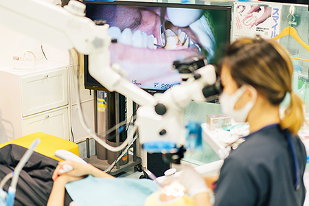 お口の中は暗く狭い空間です。さらに治療する歯は小さく、ときにはその小さな歯の中の神経の処置もしなければなりません。それはとても肉眼では見えない細かさです。歯の中の神経の治療「歯の根の治療」をするときにはとくに精度の高さが求められます。それは少しでも細菌を残してしまうと再発し、歯を失うリスクが高まるからです。